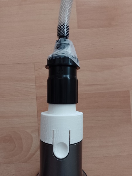 J'ai acheté il y a pas mal de temps, un petit flexible avec embouts de "précision" qui se branche sur un aspirateur ordinaire grâce à une bague d'adaptation. Mai mon dernier balai aspirateur ROBOROCK H6M1A utilise un tuyau spécial avec un connecteur électrique intégré pour alimenter la brosse motorisée. Pour brancher mon petit flexible, j'ai conçu et imprimé un adaptateur sur mesure.