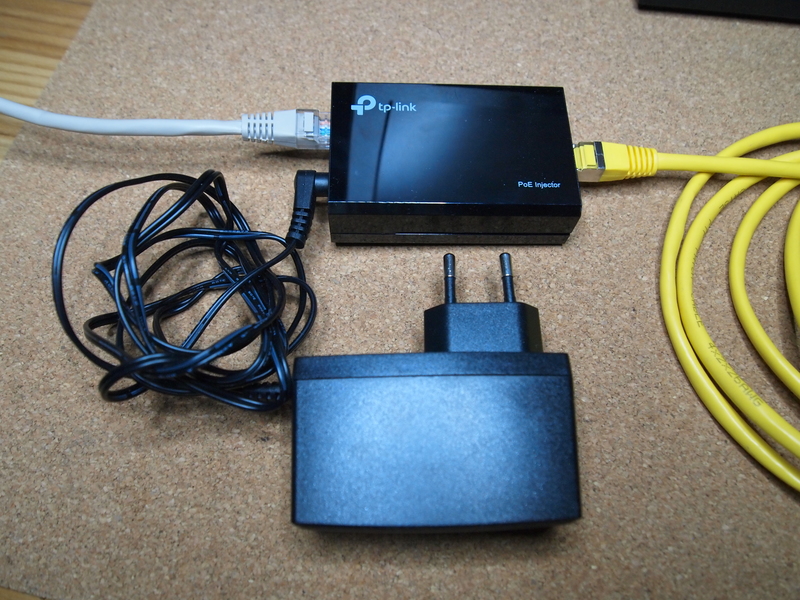 Bien sûr il faut brancher le tout sur un switch POE ou un switch standard en y ajoutant un injecteur POE (le petit boitier noir présent ici, avec son alimentation externe).